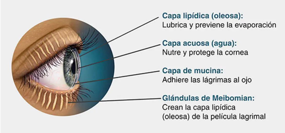 Cuando se parpadea, se esparce una capa de lágrimas que mantiene su superficie suave, limpia y lisa. La película lagrimal es muy importante para tener una buena visión y está compuesta por tres capas: